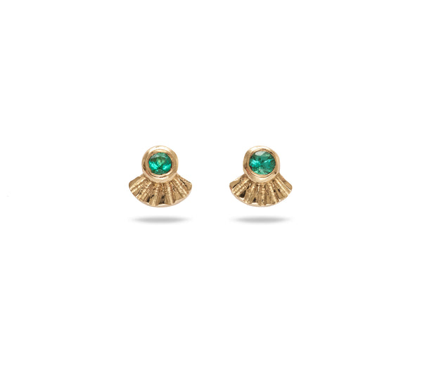 Mim Best Extra teeny tiny fan studs, 9ct yellow Gold, Emerald