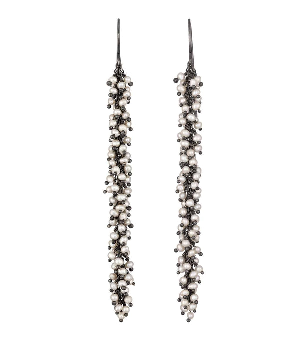 Kate Wood Pearl and Silver Catkin Earrings